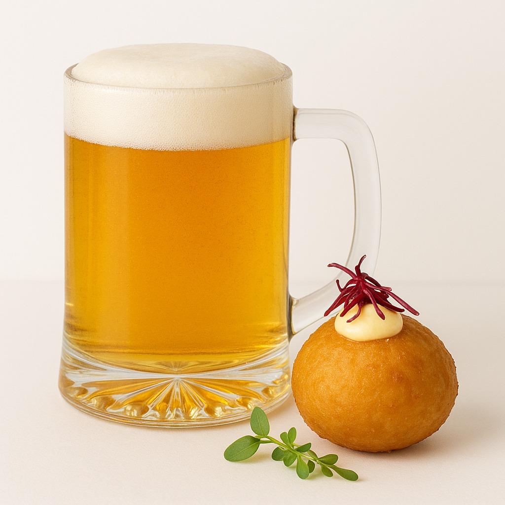 Doble acompañado de un buñuelo de gamba, coco y curry con mayonesa japonesa.
