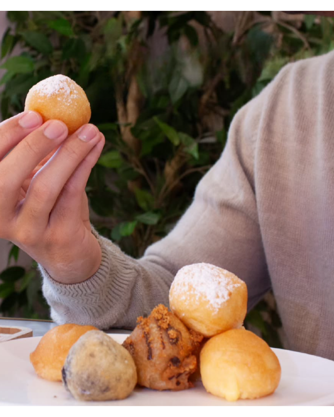 Buñuelos rellenos de nata, chocolate, crema, baeyles, turrón, lotus, black cookies, crema de avellanas y limón.