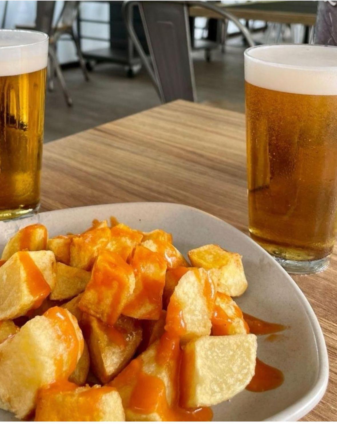 Bravas receta de la abuela acompañado de 2 tercios de Victoria.