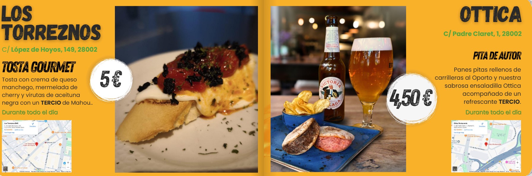 Los Torreznos, Ottica, La Prospe, La Tachuela, La Esquina de Vinaroz, Punto Ristoro, Marzeah, La Zahurda, El Rincón de Anita, El Secreto de López (II), Salamar, Restobar Fusión, Cala Millor, La Lupa y Pucará son los participantes de esta ruta gastronómica organizada por Comerciantes Chamartín junto a Cocina para Ti y con la colaboración del Ayuntamiento de Madrid, una cita que coincide con las Fiestas de San Miguel, cuyo pregón tendrá lugar este jueves.