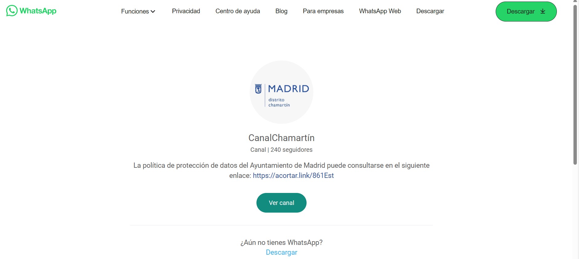 La Junta Municipal del distrito de Chamartín ha estrenado un canal de whatsapp en el que trasladará toda la información, agenda y novedades de nuestro distrito. En este mismo canal también se publicará todo lo que afecte a los actos que se celebrarán en el estadio Santiago Bernabéu.