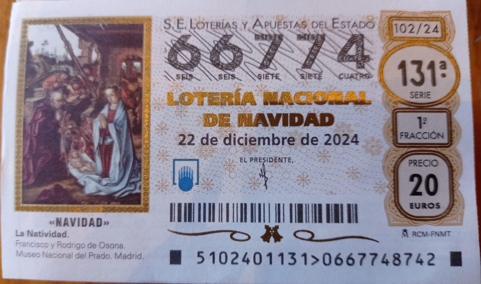 El 66.774, a la venta en la administración del número 105 de López de Hoyos (frente al antiguo Bingo Royal), es el número reservado por Comerciantes Chamartín para el Sorteo Extraordinario de Navidad de la Lotería Nacional del próximo 22 de diciembre de 2024.